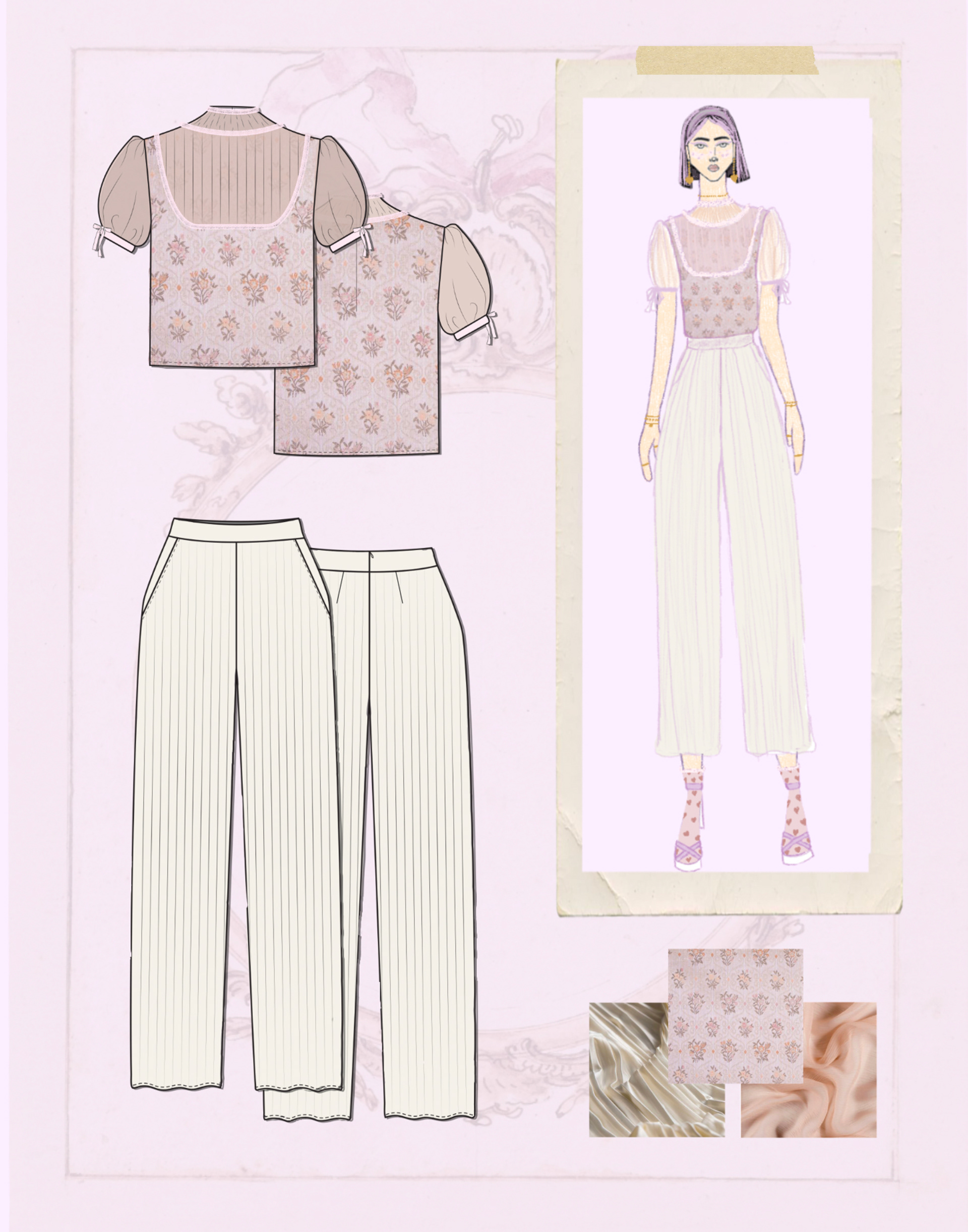 My Primark scholarship award required researching past and upcoming trends, creating a five look collection for the company, visual merchandising board, marketing strategy, tech pack, etc. With this opportunity I have learned about the interworking of the fashion industry and how to study a brand’s ideals and apply it to my design process.
